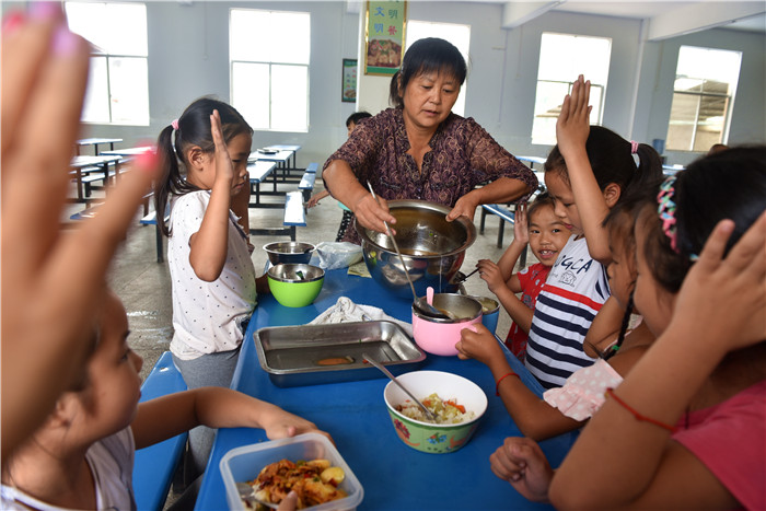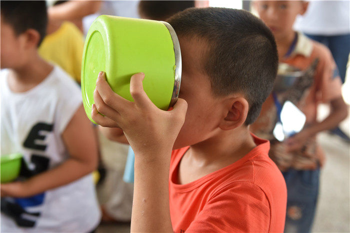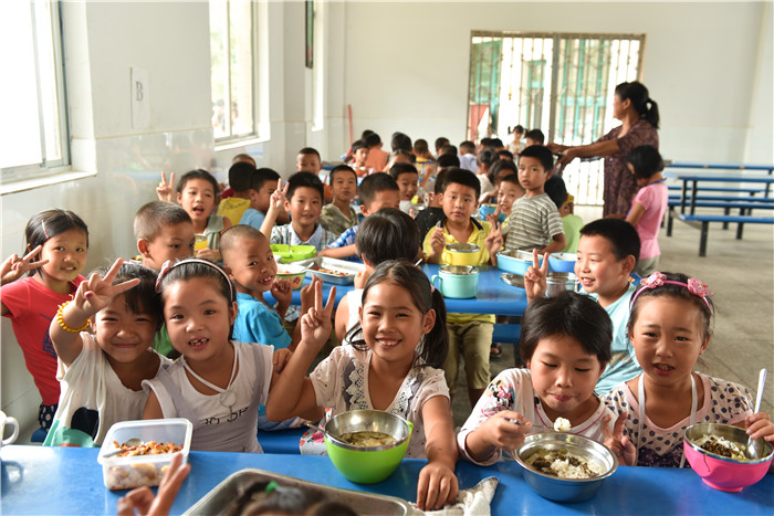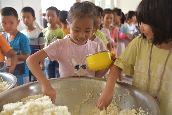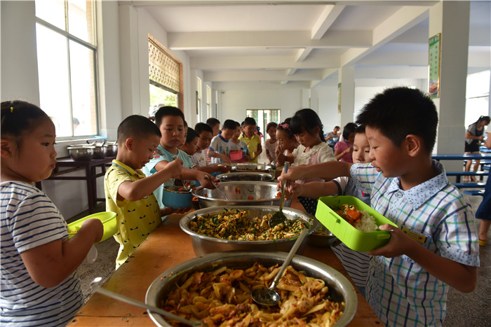 会同新闻网9月5日讯(记者 许印文)9月5日中午,会同县金子岩明德学校食堂里,三年级学生杨凡把碗里的饭菜扒了个底朝天,还发出赞叹:“嗯!比家里的饭还好吃!”站在一边的妈妈本来担心他因感冒吃不下饭,特来探看,看到孩子又端着饭盆排队加饭去了,脸上露出满意笑容。