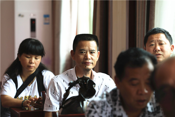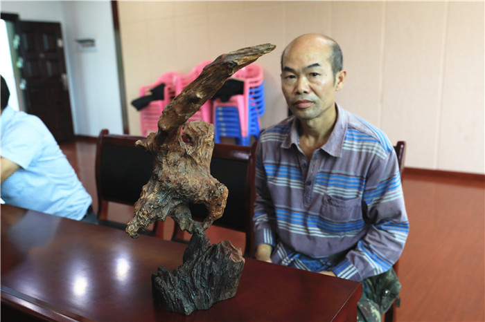 宋氏木雕宋泽录带着作品《鹰》参加评审会