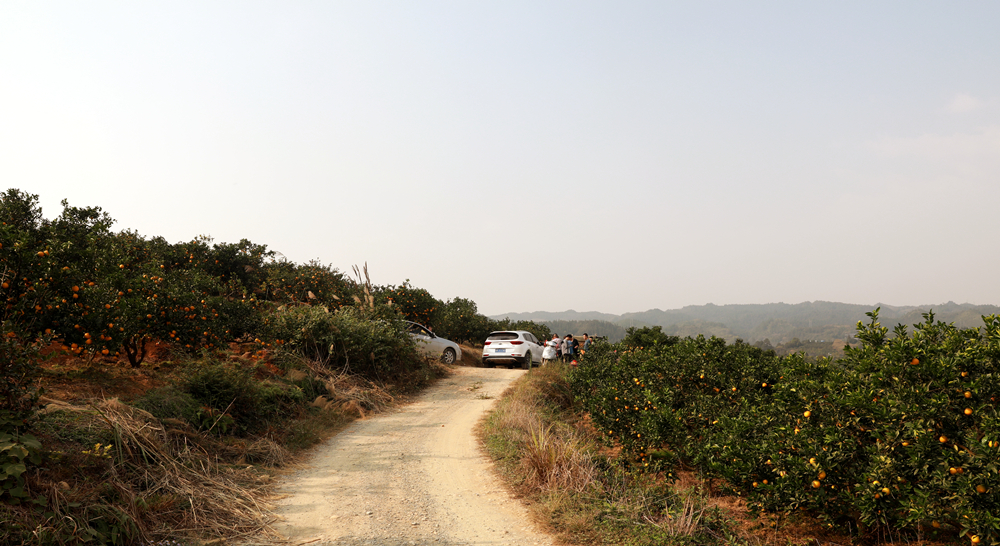 十月的火神坡暖阳高照,一到周末,整个火神坡桔园里、马路边停满了自驾前来采摘的游客。