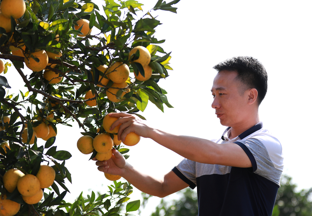 据果农覃德旺介绍,火神坡整片柑橘园面积5400余亩,一到采摘季,每天有上百游客前来观光、采摘,这里不仅有本地蜜橘、脐橙,还有从广东、广西等地引进的优良品种,今年他家柑橘产量在15万斤左右,主要销往外省及周边县市。