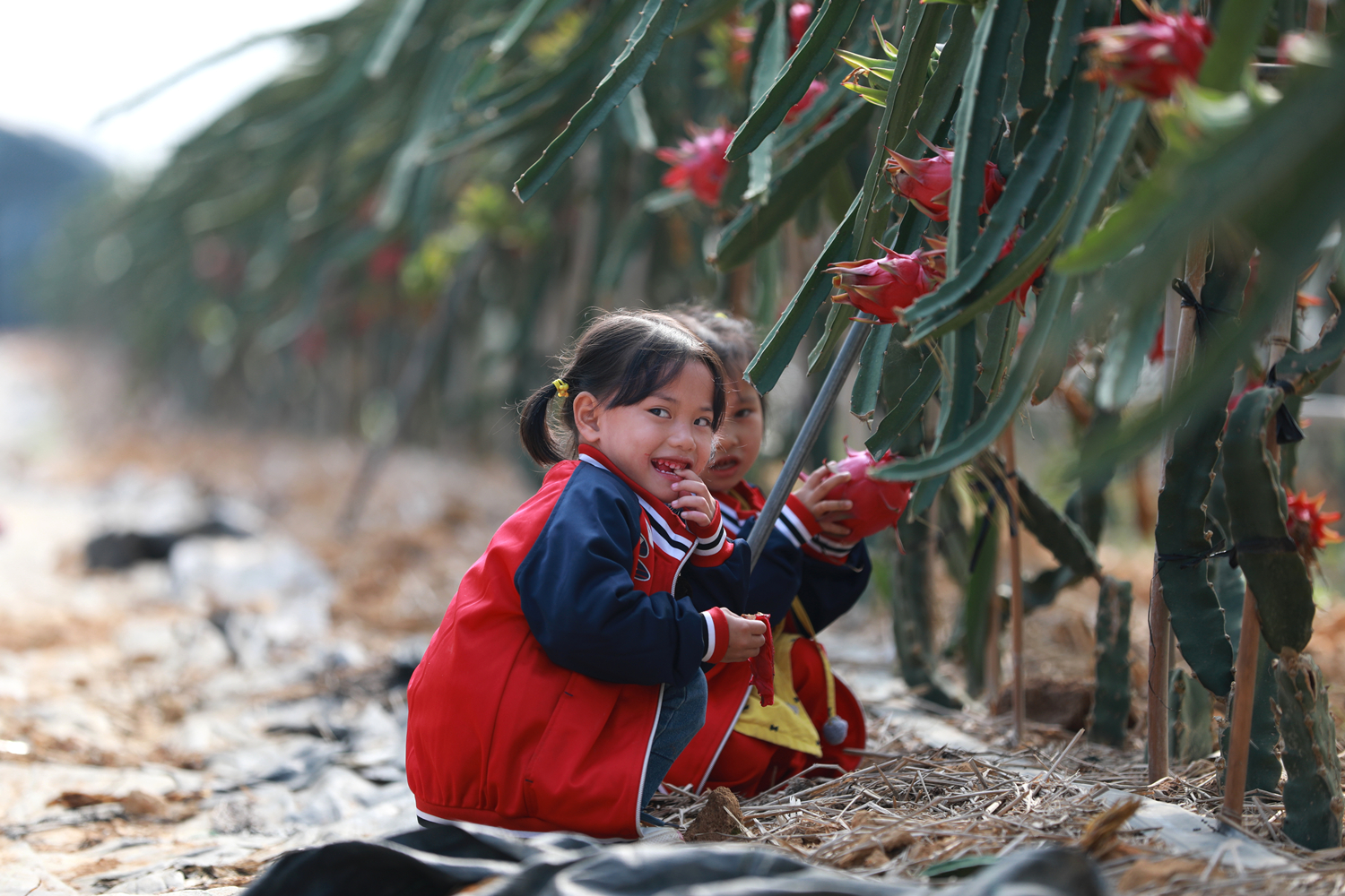 “哇,这就是火龙果啊,当真滴好看!”县阳光艺术幼儿园110余名师生组团观光,初见火龙果树,小伙伴们惊呆了,像是看到“西洋把戏”。“别动,别动,我要拍一张哒……”